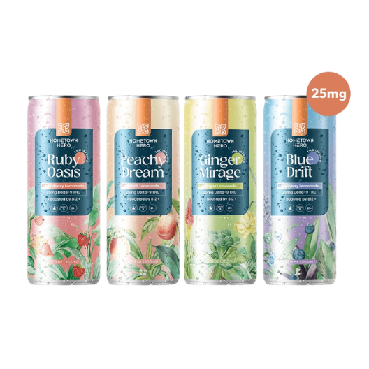 Each can contains an uplifting infusion of 25mg fast-acting Delta-9 THC and vitamin B12.